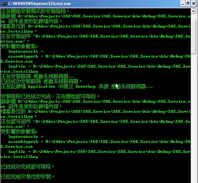 註:InstallUtil.exe 可以接受多個參數,讓你一次安裝多個 Windows 服務。不過如果其中一個服務安裝失敗,其他的服務都不會安裝(MCAD 認證考試有考過這個觀念喔!)。