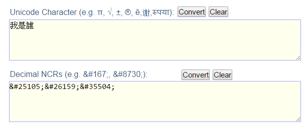 將你的unicode字元,轉換成 NCR字碼,只要你有字碼轉換的需求,不多說,直看結果